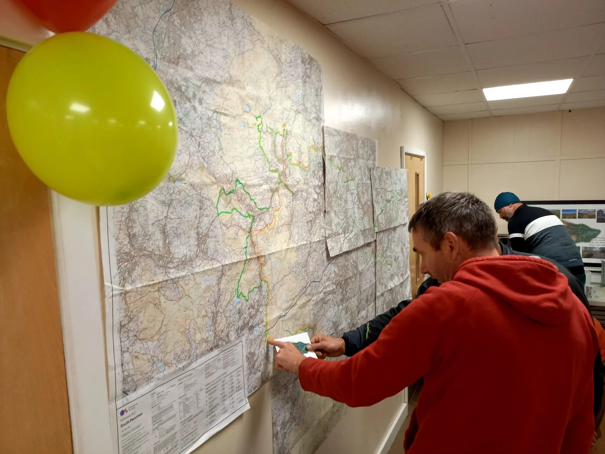 There is a large map display on the wall showing the full scale of the route marked out on OS maps.
