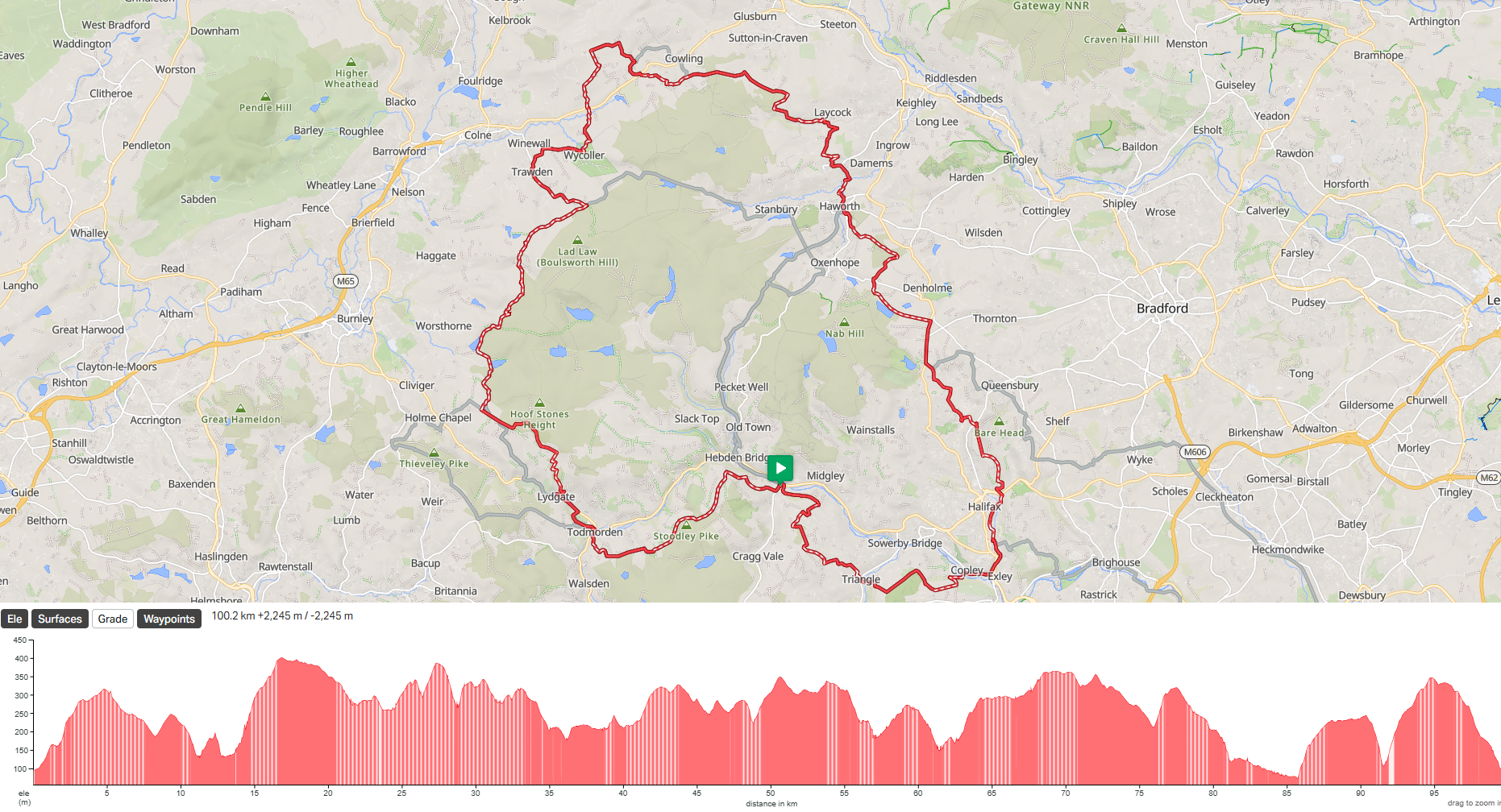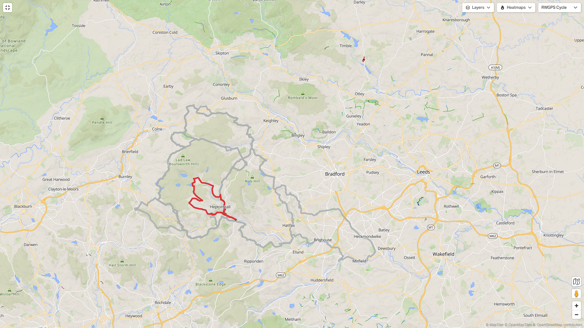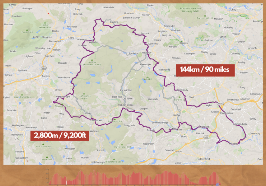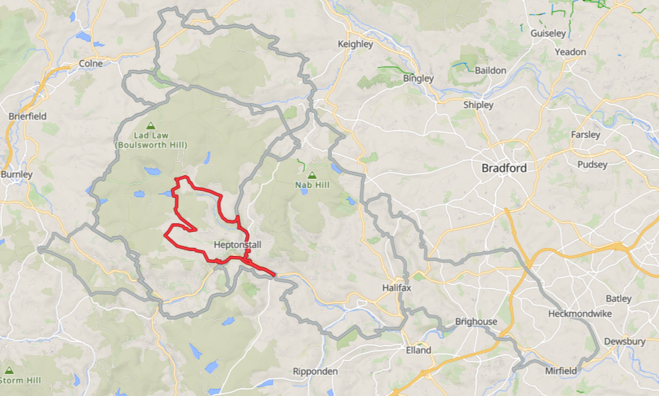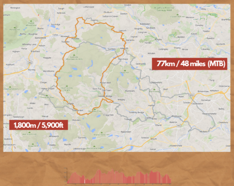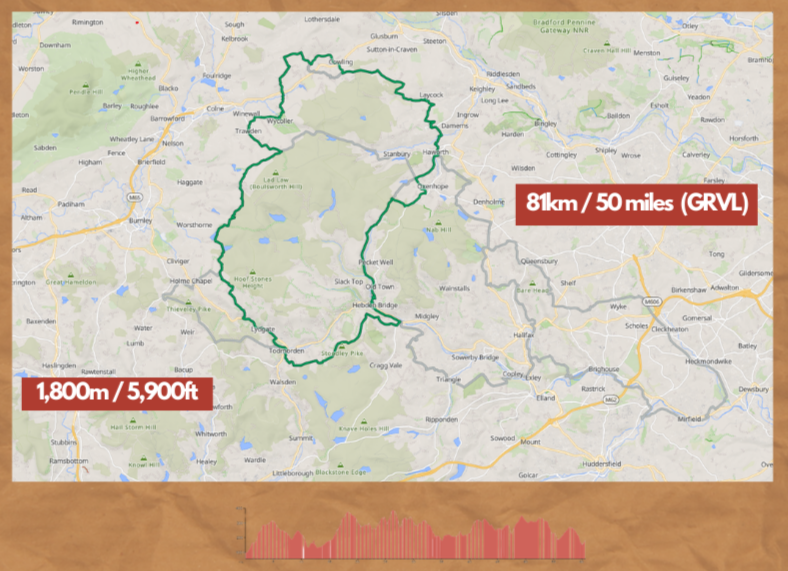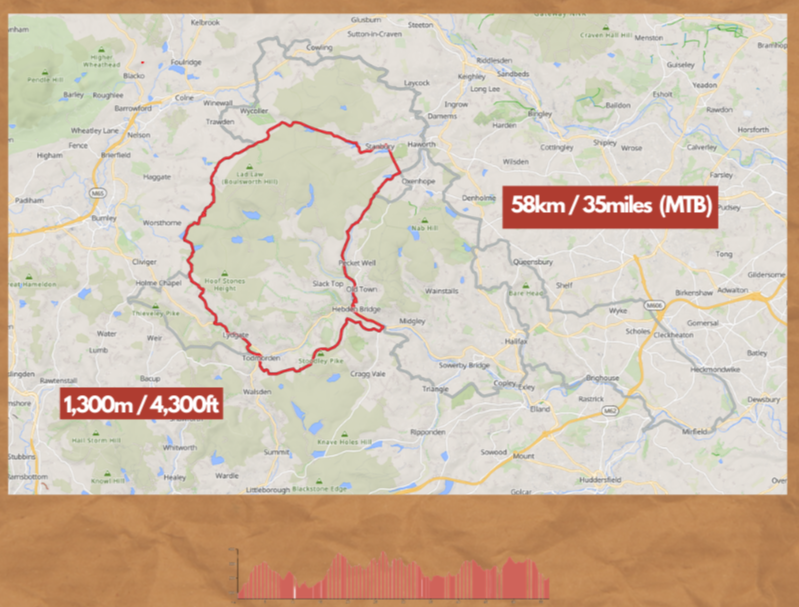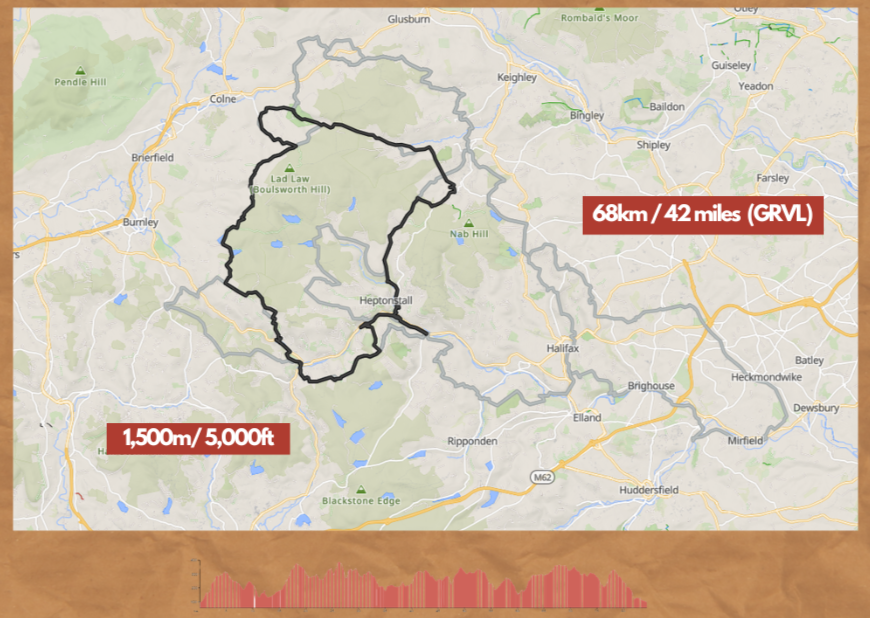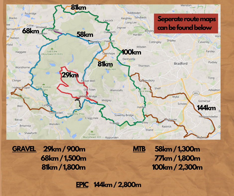 One day gravel and mtb event taking riders out into the Upper Calder Valley on tracks and green lanes on the moors and valleys slopes between Hebden Bridge, Todmorden and Haworth with riders on the long route heading over to Mirfield and back.