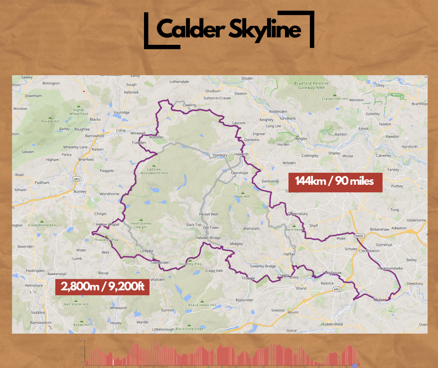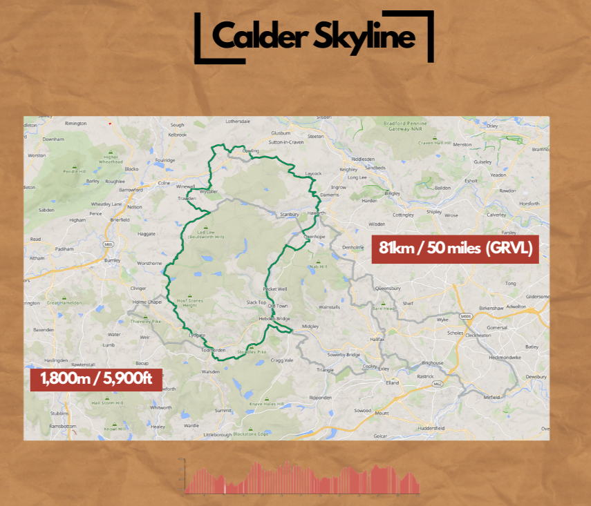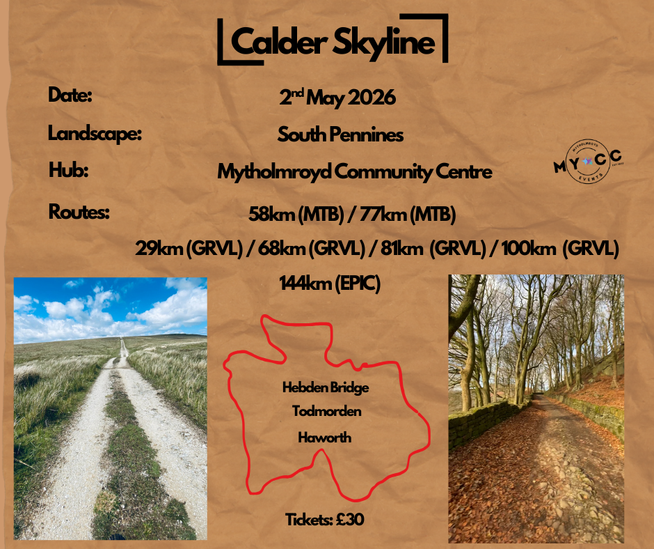 The Calder Skyline event is part of a long weekend of three events with start lines in Settle to ride the Yorkshire Dales on Sunday 3rd May and Sedbergh to ride the Howgills on Monday 4th May. The event is called the Pennine Skyline