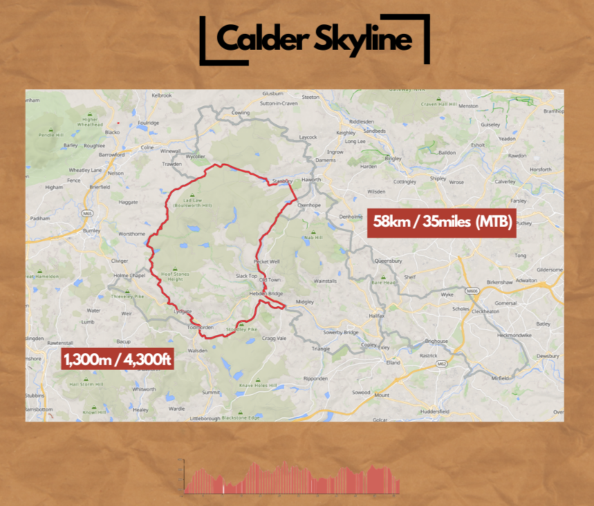This 29km / 18 miles short route will also go out as a GPX file but it is not included on the main Calder Skyline map as the film clips and photos I’ve used to promote the Calder Skyline are of tracks solely on the 55km to 144km routes. The tracks on this 29km route have been used on the Mills n Moors event and are all very accessible and fun to ride on a gravel or mtb.