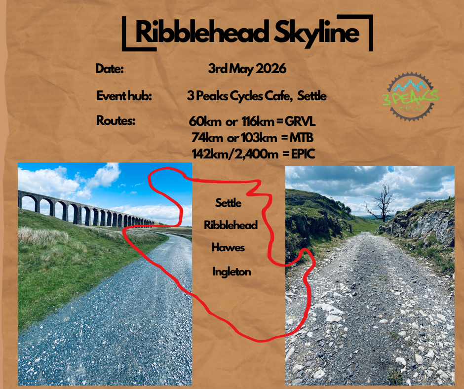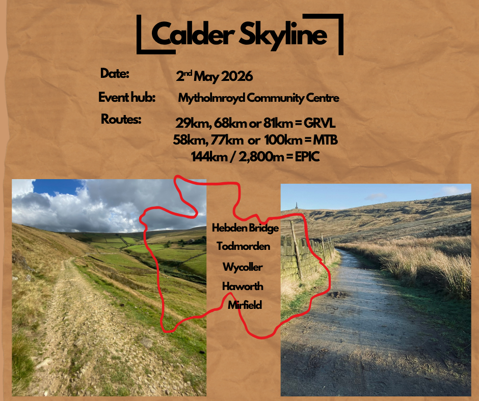 We have event hubs in three Pennine towns - Mytholmroyd, Settle and Sedbergh - with multiple routes from each event hub using tracks suitable for gravel bikes and mtbs.