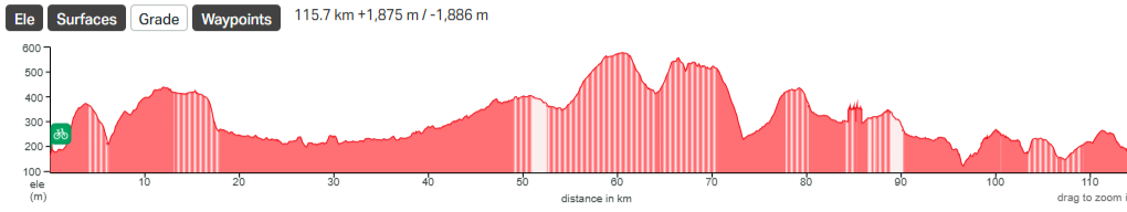gravel route: 116km and 1,900m // 72 miles and 6,200 ft