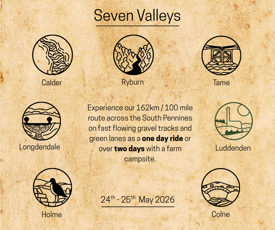 The Pennine Skyline event heads north from the Calder Valley. The Seven Valleys goes south from the start line at Mytholmroyd Community Centre in the Calder Valley.
