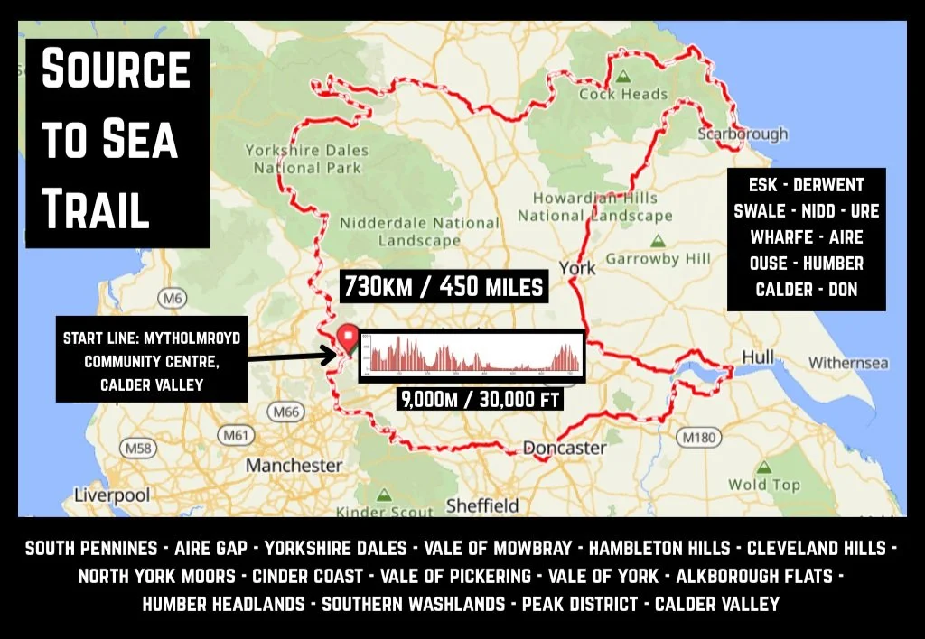 It is the only bikepacking trail in the world that traces the watershed - the ridge of high ground - of a single large scale basin where rivers such as the Aire, Calder, Derwent, Esk, Nidd, Swale, Wharf, Ure and Don have their source and follows their flow to the sea.