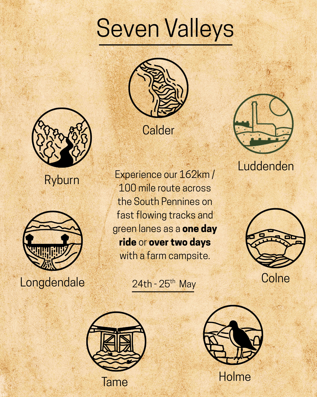 The trail is 320km long (200 miles) with a 250km option and takes you from the South Pennines, north into the Yorkshire Dales and then south to link with tracks in the Peak District. It is 80% ‘off-road’.